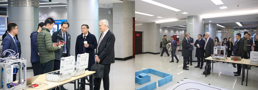 项目学生向G.Q. Max Lu AO校长一行展示了机械电子工程专业项目制课程的智能车巡线、小型机器人控制等特色成果。